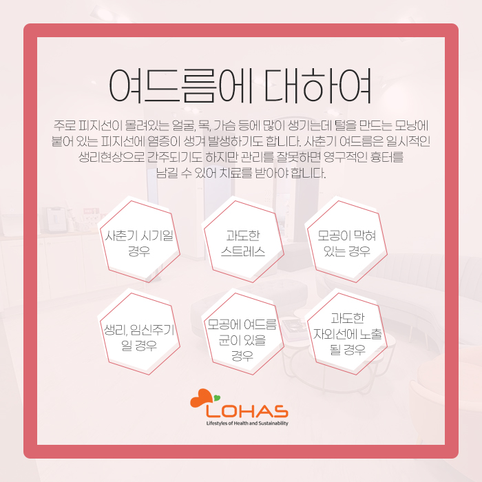 그리고 여드름에 대해 말해보자면 주로 피지선이 몰려 있는 얼굴, 목, 가슴 등의 부위에 많이 생기게 되는데요. 또 털을 만드는 모낭에 붙어 있는 피지선에 염증이 생기면서 발생하게 된답니다. 또 사춘기 시기에 생기는 여드름은 일시적인 생리 현상으로 간주되기도 하지만 관리를 잘못하면 영구적으로 흉터가 남을 수 있기 때문에 제대로 치료하는데 도움을 받도록 해야 하는데요.